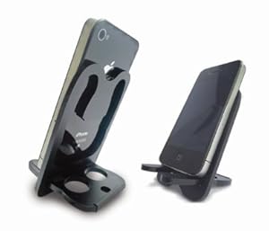 This design, "by J. Y. Kim," is superb. It packs up flat, takes up no more room than the phone's profile, comes with a storage bag. Assembled, it's stable and easy to just put a phone onto and look at. Great angle for video chatting (portrait or landscape) using the front-facing camera of my HTC Android phone. My phone's charging port isn't centered on the bottom like Apple's phones, so during my video I demonstrate with a 160GB iPod Classic. (Ignore my flub, this stand won't work with an iPad, I mean "iPod.")